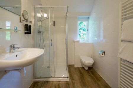 De Bostuinkamers liggen midden in het bos, direct grenzend aan het gazon, en bevinden zich op een korte wandelafstand van het hoofdgebouw. Hier overnacht u in volledige rust, omringd door natuur en vogelgeluiden. Voor iedere kamer staat een set van een tafel met twee stoelen, zodat u bij mooi weer kunt genieten van een koffie in de ochtendzon of een glas wijn in de avondlucht.De kamers beschikken over een moderne badkamer met douche en toilet, veel kastruimte, een smal bureau en comfortabele stoelen. Verder bieden de Bostuinkamers een tv, een koelkastje, koffie- en theezetfaciliteiten, een ventilator en high-speed wifi. Het geïntegreerde Bluetooth-audiosysteem maakt het mogelijk om uw eigen muziek af te spelen vanaf uw eigen device; een heerlijk extraatje na een dag in de natuur.