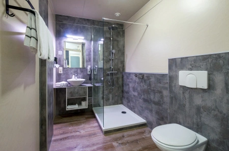 De kamer is ingericht met een moderne badkamer met douche en toilet, ruime kastruimte, een bureau en comfortabele zitstoelen. Dankzij het uitgebreide tv-zenderpakket, high-speed wifi en het geïntegreerde Bluetooth-audiosysteem in het hoofdbord van het bed, geniet u van alle gemakken die u thuis ook heeft. De aanwezige airconditioning zorgt ervoor dat het altijd aangenaam verblijven is, in elk seizoen.