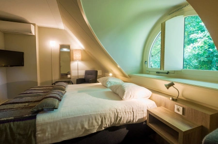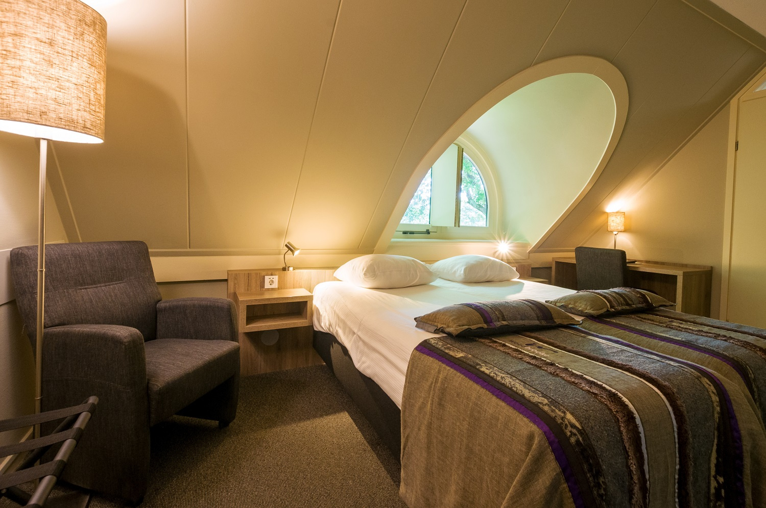 De stijlvolle inrichting omvat een bureau, twee comfortabele stoelen en een ruime eigen kastruimte. In de moderne badkamer vindt u een douche en toilet. Verder is de kamer uitgerust met een uitgebreid tv-zenderpakket, high speed wifi, airconditioning en een Bluetooth-audiosysteem dat geïntegreerd is in het hoofdbord van het bed. Zo luistert u eenvoudig naar uw eigen muziek in een ontspannen sfeer.
