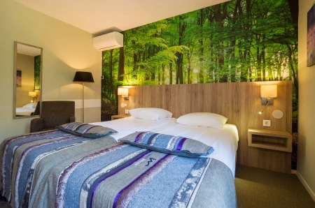 De kamer beschikt over twee éénpersoons Avek-boxspringbedden, tegen elkaar geplaatst tot een royaal tweepersoonsbed. Het Nederlandse merk Avek staat sinds 1927 garant voor ambacht en topkwaliteit, voor een weldadige nachtrust.